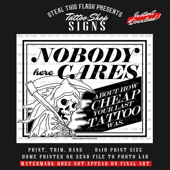 Nobody Cares How Cheap Your Last Tattoo Was Tattoo Shop Sign Etsy
